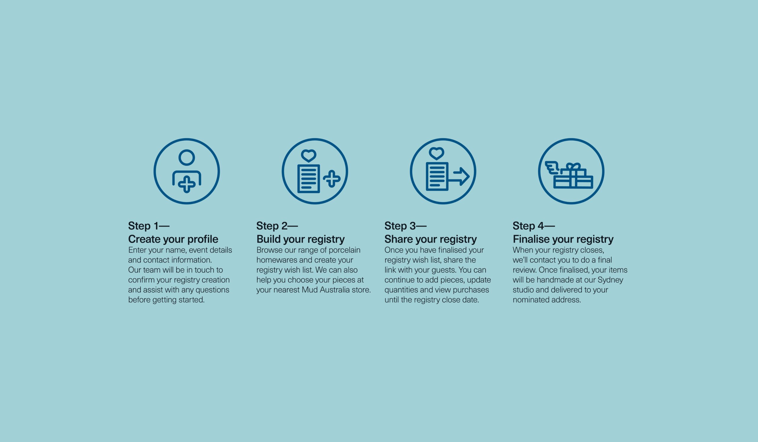 We can assist with choosing your registry items in person at your nearest Mud Australia Store.